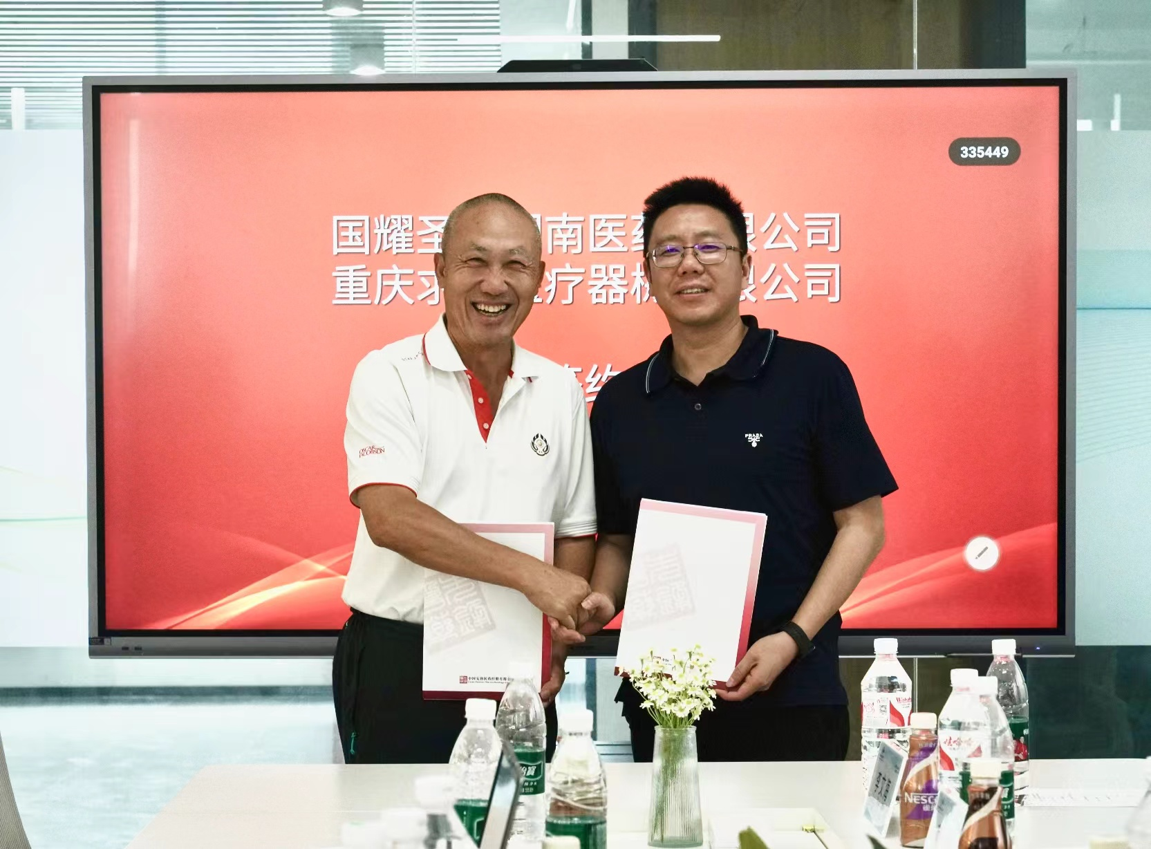 (「本公司」)与国耀圣康湖南医药有限公司(「国耀圣康湖南」)于本公司位于重庆荣昌的生产基地举行战略融资签约仪式。本公司之附属公司重庆求善医疗器械有限公司(「重庆求善」)将获得国耀圣康湖南人民币900万元的现金融资,国耀圣康湖南将获得重庆求善一定比例的股份,并将取得Q3医疗系列创新医疗产品于中国湖南省的独家代理销售权益。国耀圣康总裁程俊佩女士;国耀圣康湖南总经理张宏先生;本公司董事会主席李新洲先生、投资部总经理兼重庆求善项目负责人郑永翔先生等领导及行业内资深专家出席了本次签约仪式。